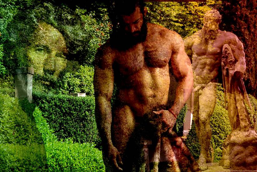 l’altro, un maschio barbuto che si masturba. In centro all’immagine una seconda